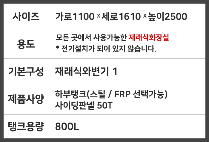 | ¿À¼öÅÊÅ© | ¿ë·® 800L / ÇϺÎÅÊÅ© FRP ¶Ç´Â ½ºÆ¿(ö) ¼±Åð¡´É |