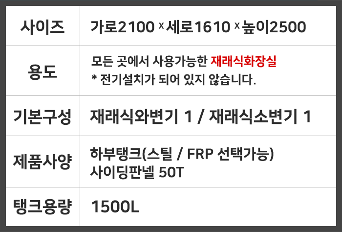 | ¿À¼öÅÊÅ© | ¿ë·® 1500L / ÇϺÎÅÊÅ© FRP ¶Ç´Â ½ºÆ¿(ö) ¼±Åð¡´É |
