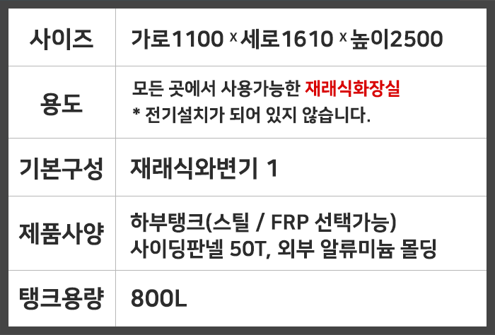 | ¿À¼öÅÊÅ© | ¿ë·® 800L / ÇϺÎÅÊÅ© FRP ¶Ç´Â ½ºÆ¿(ö) ¼±Åð¡´É |